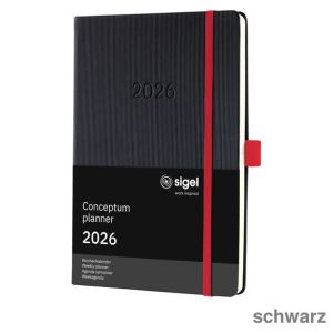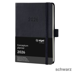 1. Sigel Buchkalender 2026 "Conceptum Pure" A6 schwarz links Woche, rechts Notiz