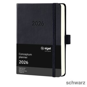 2. Sigel Buchkalender 2026 "Conceptum Pure" A6 schwarz 1 Seite = 1 Tag