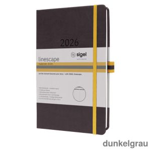 4. Sigel Buchkalender 2026 "Linescape" A5 dunkelgrau 2 Seiten = 1 Woche