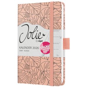 5. Sigel Buchkalender 2026 "Jolie Beauty" A6 Rose Monstera 2 Seiten = 1 Woche