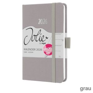 1. Sigel Buchkalender 2026 "Jolie Feel" A6 grau 2 Seiten = 1 Woche