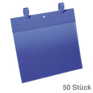 8. Durable Kennzeichnungstasche A4 quer, mit Drahtbügel blau 50St.
