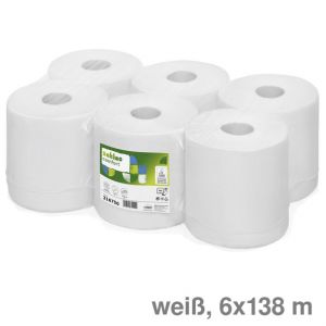 7. Satino Papierhandtuch-Rollen "Comfort", Recyclingpapier 19,5 cm x 138 m 2-lagig weiß 6St.