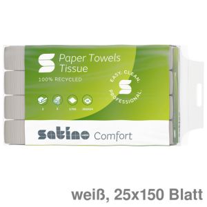 10. Satino Papierhandtücher "Comfort", Recyclingpapier Z-Falz weiß 20,6 x 24 cm 25x150Bl.