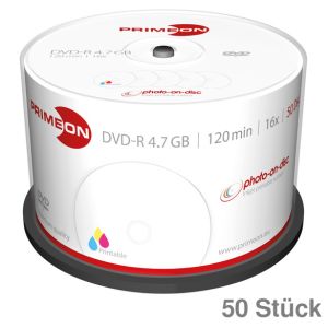 6. Primeon DVD-R, bedruckbar 4,7GB Spindel 50St.