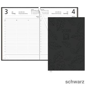 3. Zettler Buchkalender 2026 "876", Recyclingpapier schwarz 1 Seite = 1 Tag