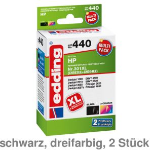3. Edding Refill-Tintenpatrone 440, HP 301XL, Multipack schwarz, dreifarbig 2St.