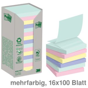 1. Post-it Haftnotizen "Z-Notes", Recyclingpapier mehrfarbig 76 x 76 mm 16x100Bl.