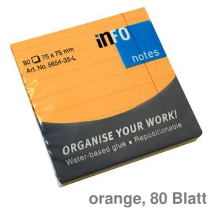 3. Info Haftnotizen "Sticky Notes", liniert orange 75 x 75 mm 80Bl.