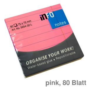 4. Info Haftnotizen "Sticky Notes", liniert pink 75 x 75 mm 80Bl.
