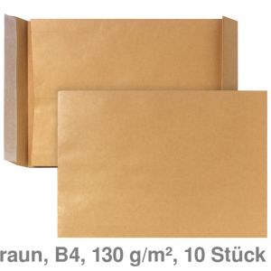 10. Faltentasche B4, ohne Fenster, 40mm Klotzboden braun 130g/m² 10St.