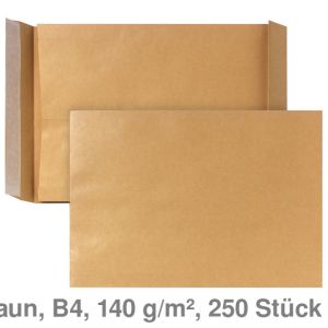 2. Faltentasche B4, ohne Fenster, 20mm Klotzboden braun 150g/m² 250St.