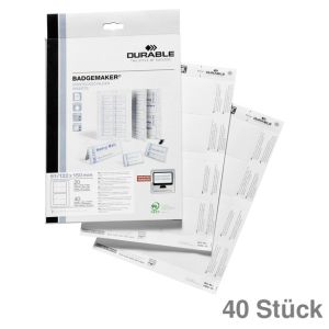 5. Durable Einsteckschilder "Badgemaker" weiß 52 x 100 mm 40St.