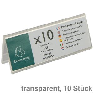 10. Exacompta Tischnamensschild "Office", Dachform transparent 105 x 40 mm 10St.