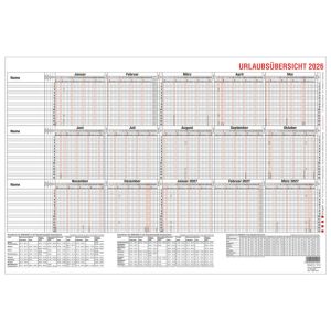 3. Legamaster Urlaubsplaner 2026, für 30 Personen, abwischbar 60 x 90 cm 1 Seite = 12 Monate